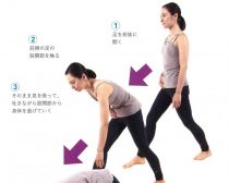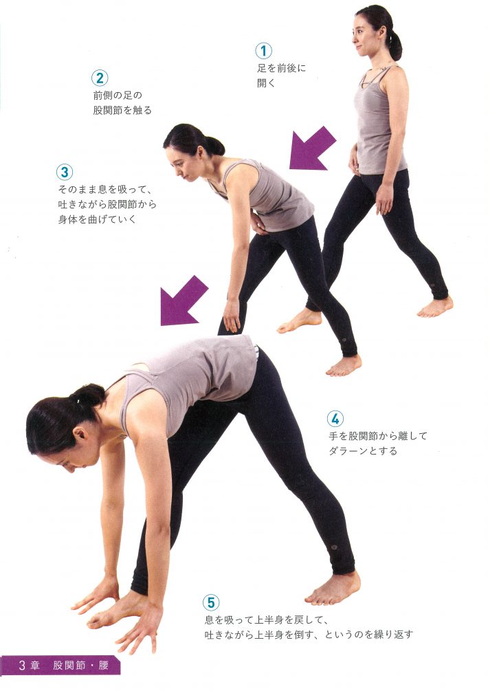 3. そのまま息を吸って、吐きながら股関節から身体を曲げていく