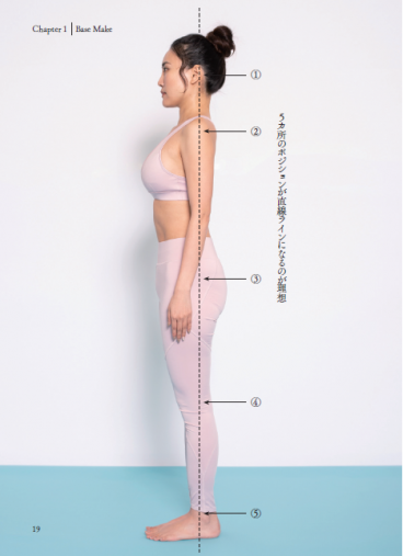 「体が歪んでいたり、姿勢が悪いままトレーニングしても、美しいボディラインは手に入りません。太くしたくない部分に筋肉がついたり、ケガの原因になったり、体にとって良くないことが起こる可能性ばかり高くなります」と本書。美しい体は正しい姿勢から、というわけで、まずベースとなる姿勢づくりから始めましょう。ポイントとなるやりかたを、本書から抜粋しますね。