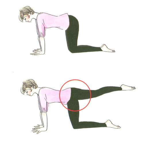 おしりとお腹の筋肉は直接つながっているので、おしりの筋肉をぎゅっと寄せるとおしりが上がり、お腹の筋肉も締まります。