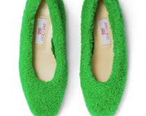 そんなジミーチュウのアイテムで今イギリスのユーザーたちをザワつかせているのが、イギリスやアメリカ、日本のジミーチュウで販売されている、緑色のフラットシューズ「MERLIN FLAT」。寒い季節でも足下を温かくキープしてくれそうなデザインではあるのですが、なんだかくすりと笑ってしまうのがその見た目。