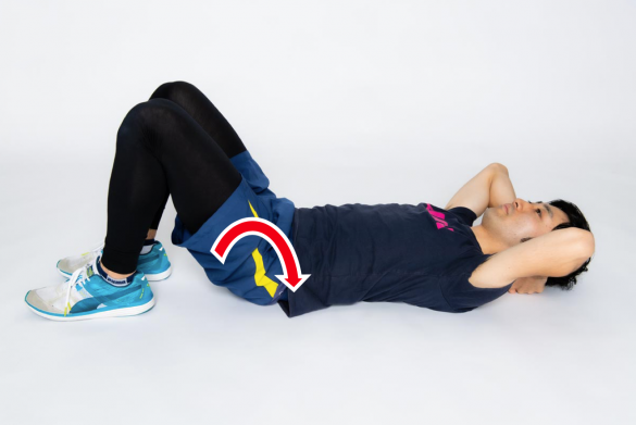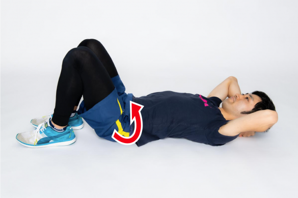 4. 息を吸いながら、“腰を丸めるよう”に骨盤をウニョっと動かします。