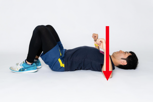背中を反らす時に肩が床から離れると上半身を頭で体重を支えることになり、首を痛める可能性があります。肩は必ず床につけて、背中だけをそらすようにしましょう。