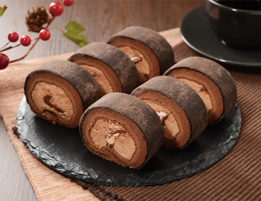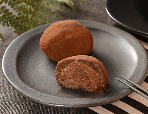 ビターな味わいの生チョコソースが使用されたチョコホイップは、チョコレート味の求肥生地とロールケーキで包まれ「伸びる・ふっくら・ホワホワ」の新食感です。