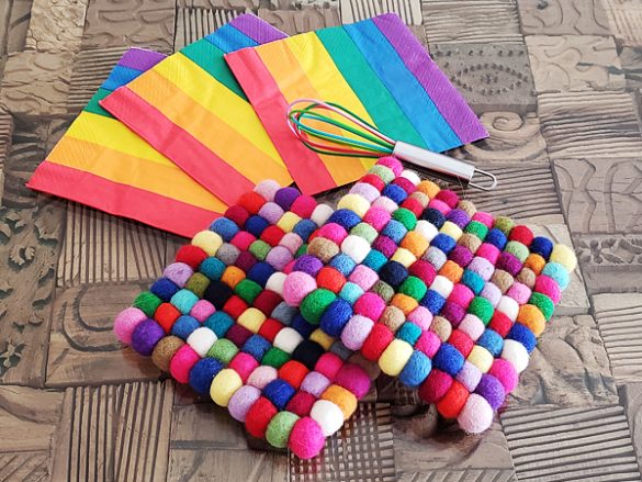 日本の100均やプチプラショップにはなかなかないのが、見るだけで元気になるようなカラフル&ポップなアイテム達。特に、レインボーやマルチカラーのグッズ達はフライングタイガーの強いシンボルにもなっています。鍋敷き、ペーパーナプキン、泡立て器など、食卓・キッチン台に上るだけでワクワクとした躍動感を生み出すに違いありません。特にキッチンツール類は料理の時間を楽しく盛り上げてくれます。