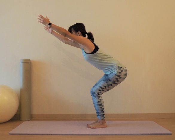 3. 両手を斜め前に伸ばして「椅子のポーズ」