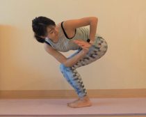 「ねじった椅子のポーズ」は、腰を落として上体を前傾、体幹を強化させる「椅子のポーズ」にねじりを加え、脇腹を含めたお腹まわりに効かせることのできるポーズです。