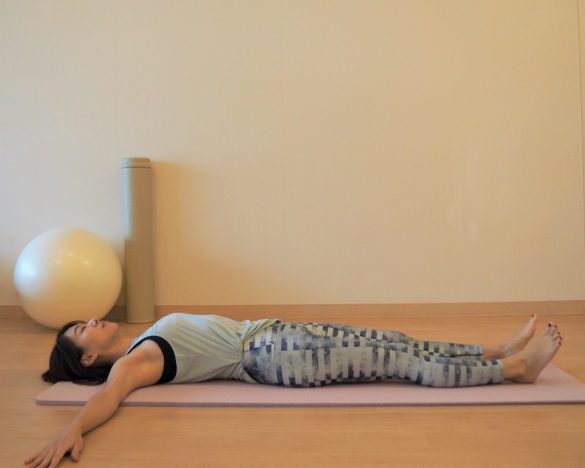 1. 仰向けになり、両腕を肩の高さで真横に広げる