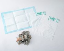 ②ペットシーツを吸水面が外側にくるよう二つ折りにする。よく吸ってくれるようにするためのひと工夫です。
