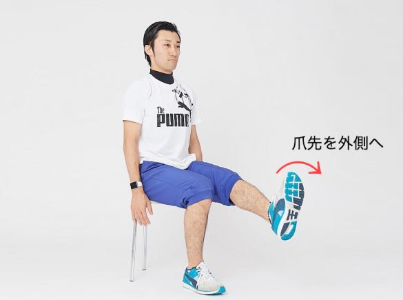 2. 爪先を外側へ向けながら膝を伸ばして行きます。