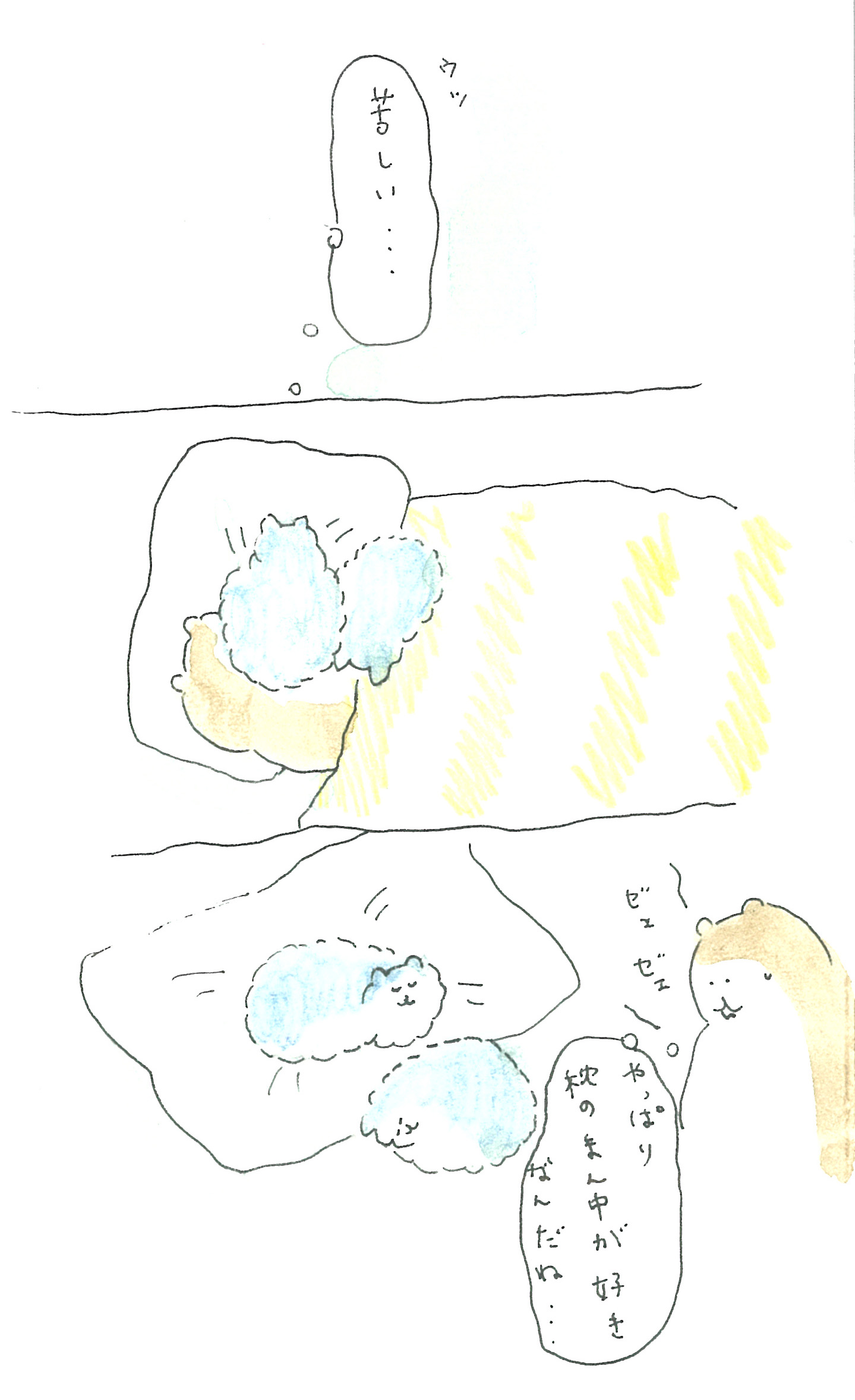 そんな控え目なbubuchiyoさんの日常をやさしい色づかいで描いた、Twitterで話題急上昇中の「ぶぶちよ絵日記」です(書籍『ぶぶちよ絵日記』も発売中です)。