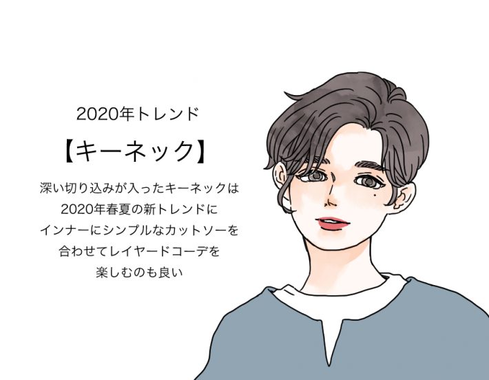 そして2020年の春夏にはさらに展開が少なくなるのではないでしょうか。オーバーサイズシルエットでリラクシングな装いは続くものの、襟まわりは露出し過ぎず控えめになるのが今年の春夏の傾向です。