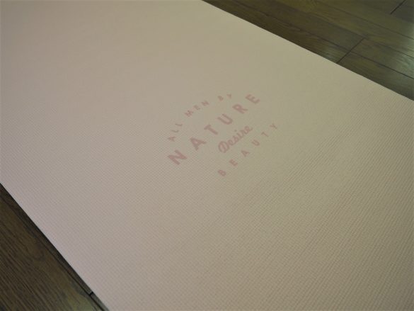 広げてみると、中央に文字がプリントされています。これなら表裏を間違えて使うこともないでしょう。意外と知られていませんが、ヨガマットの表裏を間違えて使っている人は多いです。手足が滑りやすかったり、体に触れる表面に違和感があったりする場合、裏表が反対になっているかもしれませんよ。