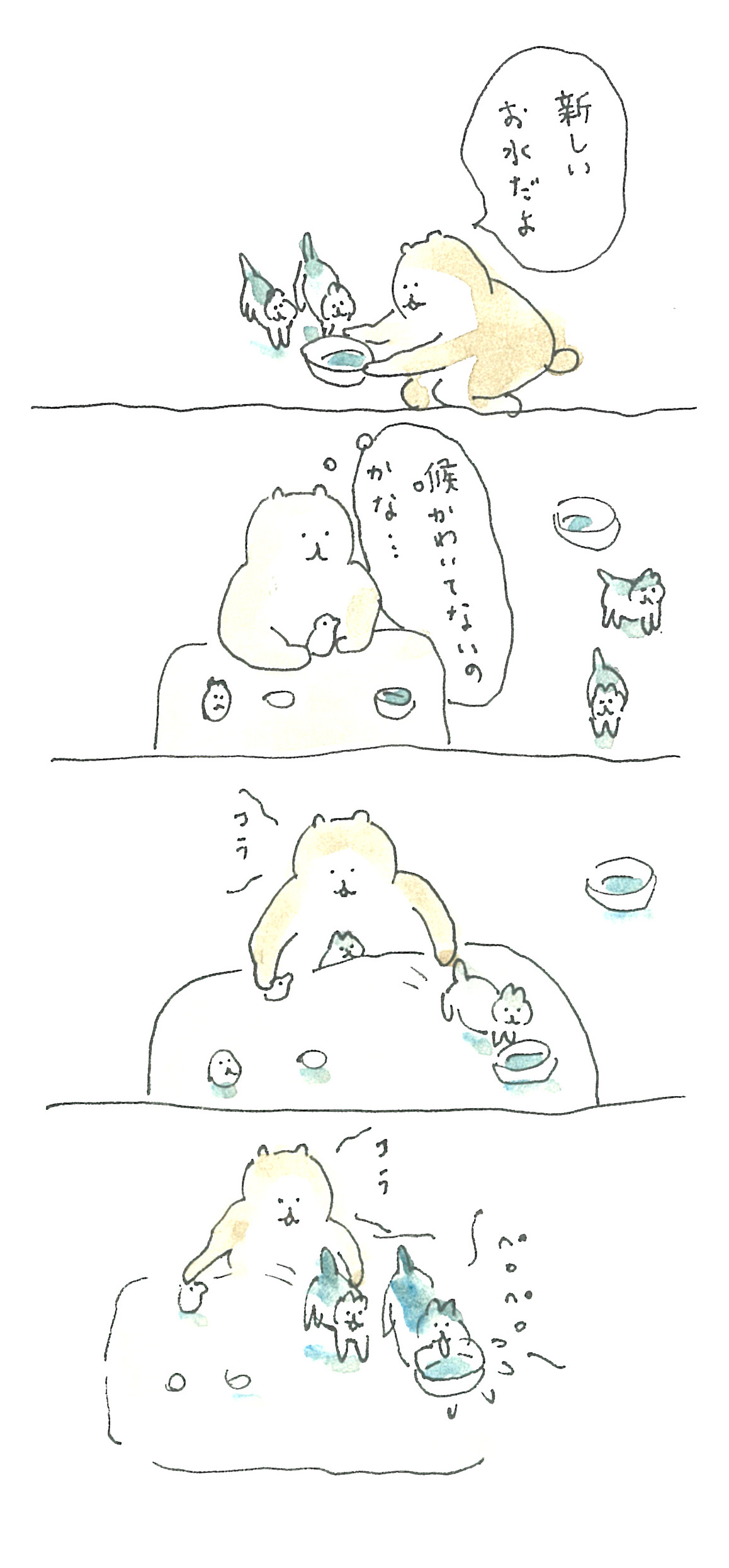 2匹のねこと新しいお水|ぶぶちよ絵日記