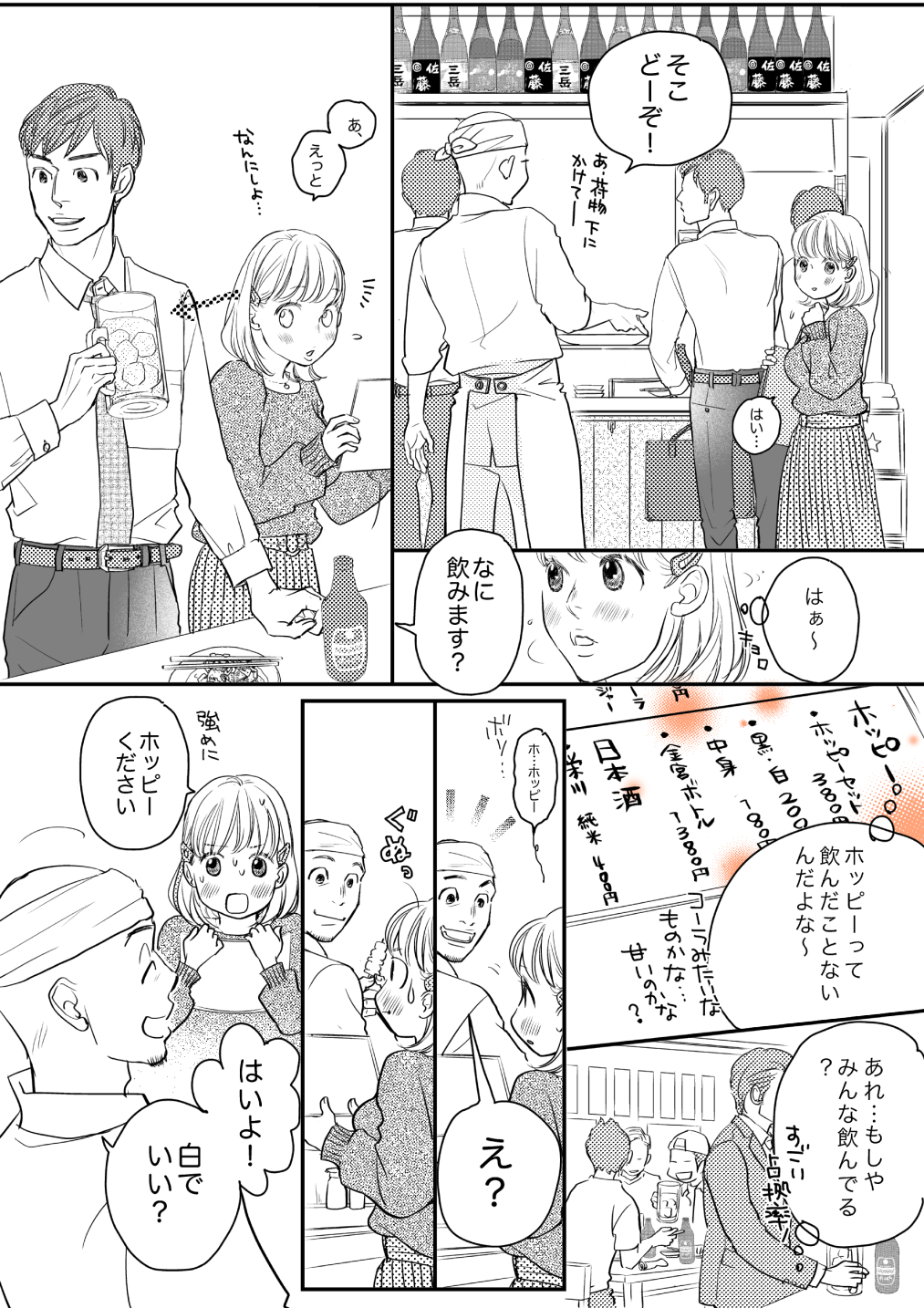 初めての立ち飲みでホッピーの中と外を知る/漫画「よりみち のんべろさん」