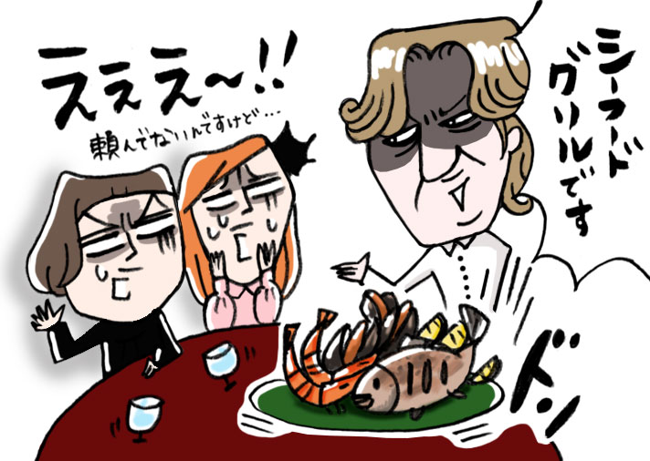それでもお昼からガッツリ食べる気のなかった2人は、カタコトながらの英語でキッパリと断ります。ところが、その10数分後。なんとランチセットのほかに頼んでいないシーフードグリルが大皿に盛られた状態で出てきます。