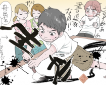 嬉しそうに奨励賞の表彰状をぐしゃぐしゃとまるめるぽんちゃん。(ま、丸めないで…)と戸惑いながら、その作品を見てみると、力強く筆が、こう、なんというか、ちょっとわからないけどすごい圧巻なのだ。これは私の芸術能力が足りないからだと理解しよう。