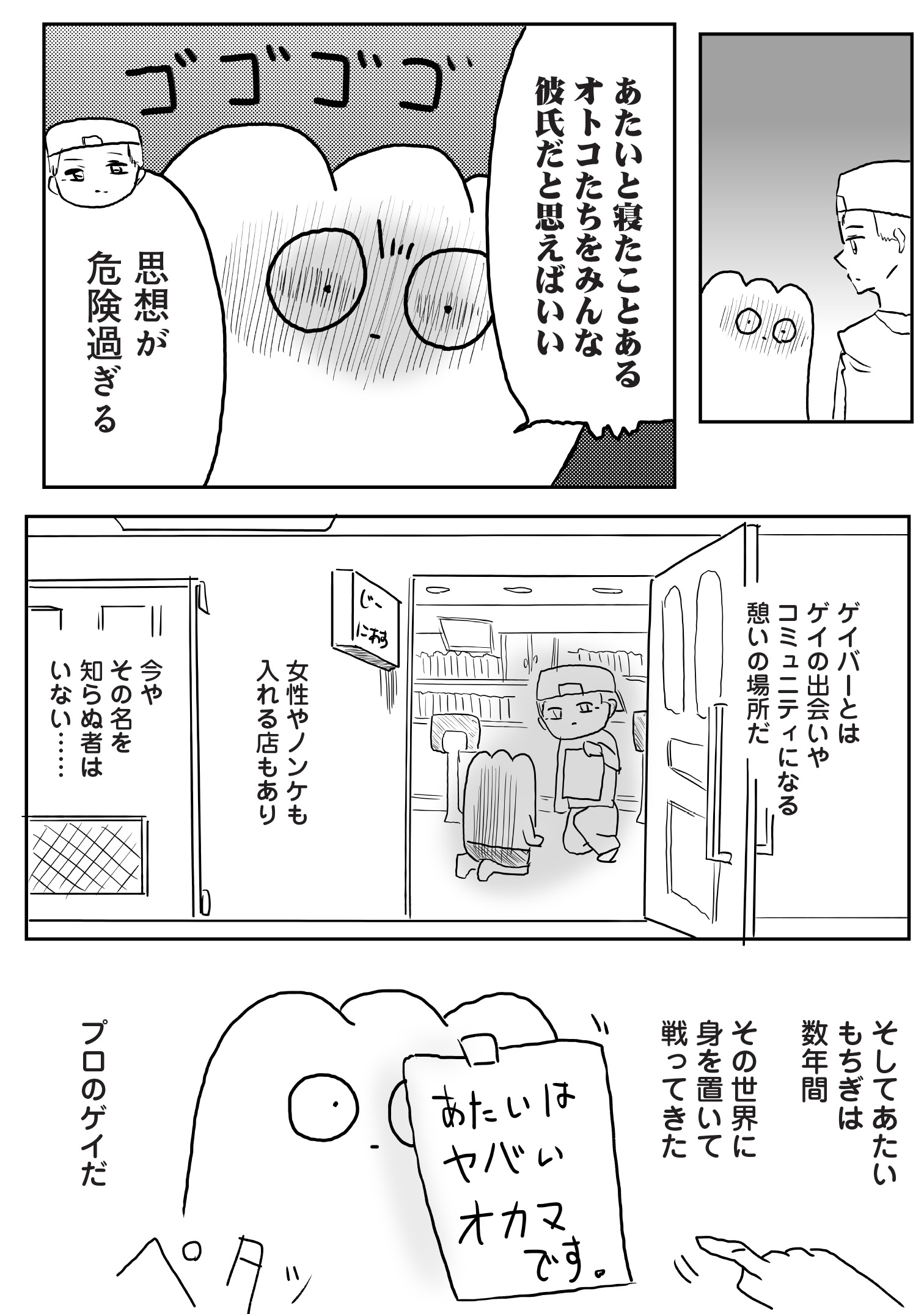 心身共にボロボロになってしまった時、足を踏み入れることになったのが、ゲイバーという世界。本作に登場するしっかりもののママや個性の強い従業員たちとのやりとりに読者は泣き笑い。作中に出てくるもちぎさんの深イイ言葉は生き迷う心に染み入ります。