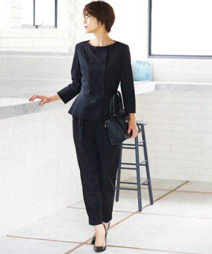 概して、出席者の年齢が若く、葬儀場や法事が行われる会場が都市部であればあるほど、デパートのブラックフォーマル売り場で売られているようなブラックフォーマルにこだわる必要はなく、光沢のない素材で、シンプルなデザインの黒の上下を着ていれば、それで問題ありません。