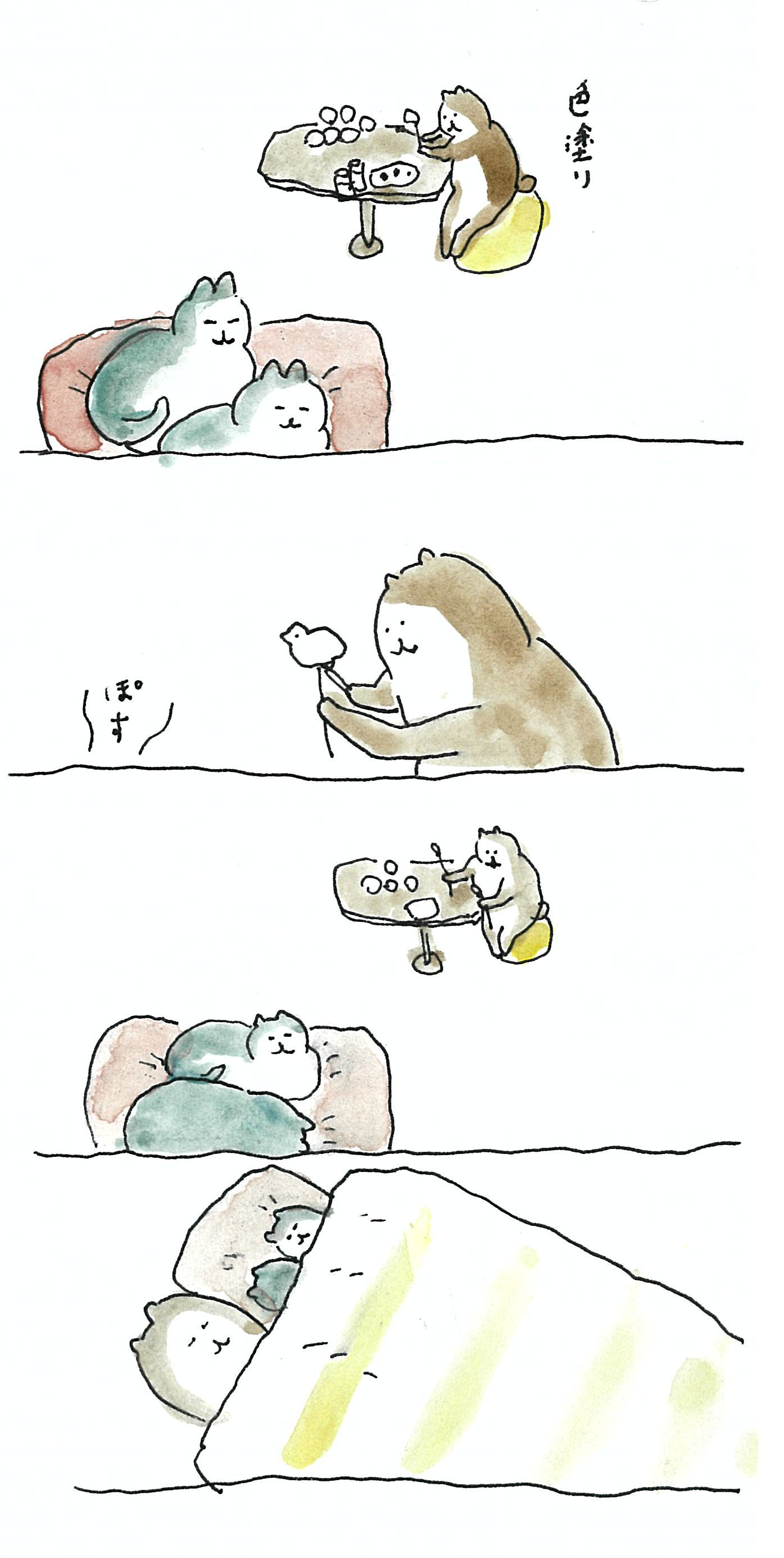 そんな控え目なbubuchiyoさんの日常をやさしい色づかいで描いた、Twitterで話題急上昇中の「ぶぶちよ絵日記」です(書籍『ぶぶちよ絵日記』も発売中です)。