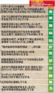 1位 ゴルフと酒の席で仕事を取れると思っていてそれをアドバイスしてくる 96%