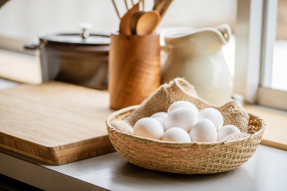 冷蔵庫のドアポケットに入れると、開閉の衝撃で割れやすくなることも。容器ごと冷蔵庫内にいれるのがおすすめ。卵の殻には、気孔という目に見えない小さな穴がたくさんあり、ここから匂いを吸収しやすい。匂いの強い食品から離して保存する。