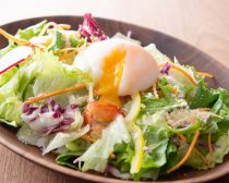料理をするのが面倒くさいって日もありますよね。そんな時は、温泉卵をゲット。こちらもコンビニで入手可能です。ついでにカット野菜を購入し、粉チーズをトッピングしてまんなかに温泉卵をのせれば、手間なしオシャレ飯の出来上がり。