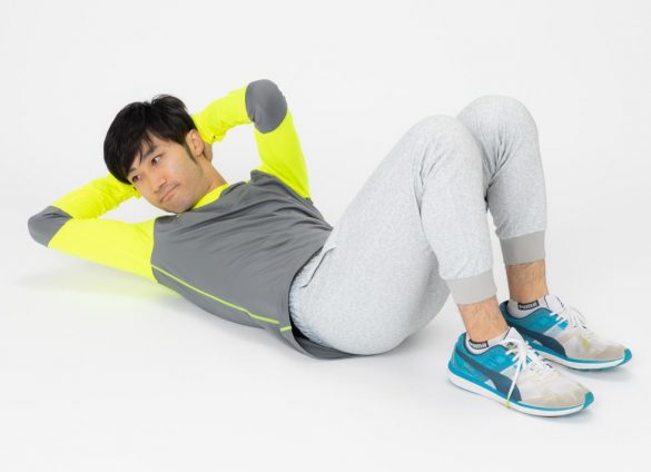 ※10回2~3セット/1日。起き上がる時は息を吐いて、下がる時は息を吸いましょう。エクササイズ中は常に腹圧を高めましょう。呼吸が浅くなっても構いません。