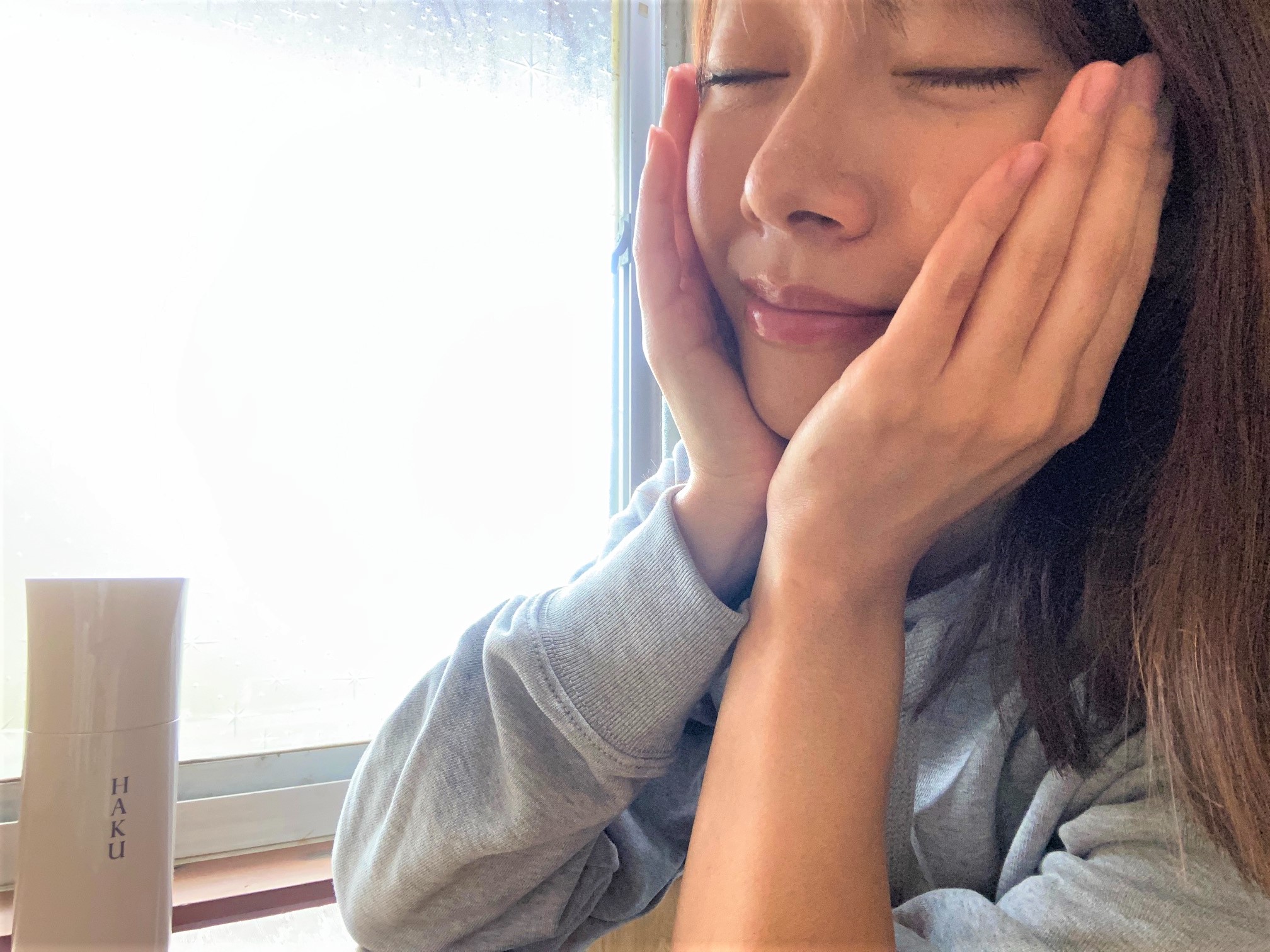 もうすでにシミたちがチラホラ姿をあらわし始めている筆者の肌。“今後も増え続けたら……、と思うと心配!”と、さっそく「HAKU メラノフォーカスV」を使ってみました。