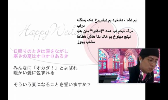 それは全員、結婚式に招待していた大学時代の友人たち。それぞれが桜やウェディング画像を背景に、当日着るはずだった衣装に身を包み、岡田さんと奥さんに「おめでとう!」と祝福の言葉を一斉に投げかけてきたのです。なんと、彼らは式をキャンセルした岡田さん夫妻のためにお手製の式を開いてくれたのでした。