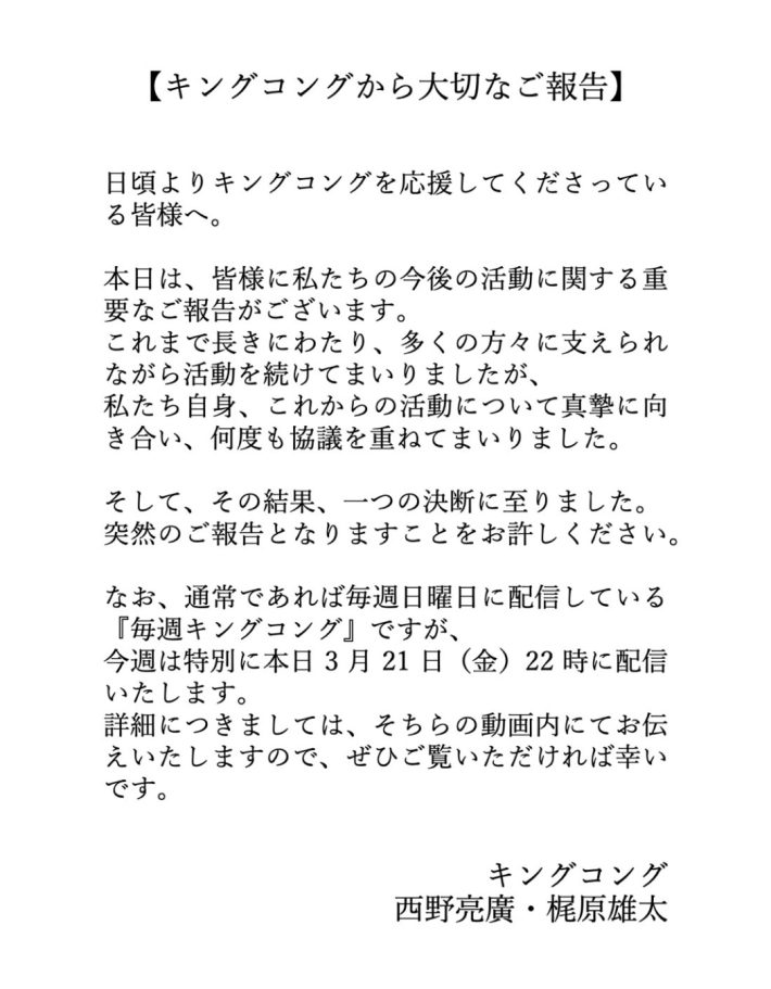 キングコング 炎上